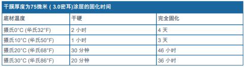 ?在涂裝施工和涂層固化過(guò)程中可允許接受環(huán)境溫度低至攝氏-18°C (華氏0°F) ; 只要確定底材表面干燥并無(wú)結(jié)冰。