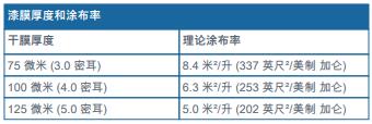 備注: 涂裝時(shí)只需達(dá)到看得清楚濕膜的狀態(tài)即可,確保干膜厚度最大為25 微米(1.0密耳)|此法也同樣適用于后道涂層,以此確保達(dá)到所要求的干膜厚度。