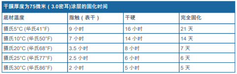 - 敬請參閱補充參數(shù)表 - 涂層固化時間表。