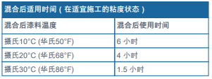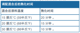 ?涂裝前最好應將各組份或混合后的漆料溫度調控到攝氏15°C (華氏59°F)以上, 不然則可能需要添加稀釋劑,以便將漆料粘度調整到適合施工的粘稠狀態(tài)。