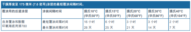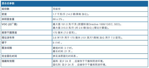 備注: 刷涂施工時的最大干膜厚度: 80 微米 (3.1 密耳) 。
