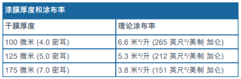 -敬請(qǐng)參閱補(bǔ)充數(shù)據(jù)表 - 理論涂布率與干膜厚度對(duì)照關(guān)系表。
